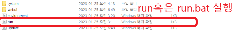 실행방법 :sd.webui → webui 경로로 들어가서 아래 파일 실행하면 끝